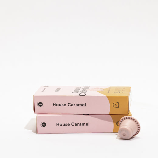 House Caramel: All the flavours of our signature House Blend, with the added heavy, malty sweetness of caramel. Intensity 8.