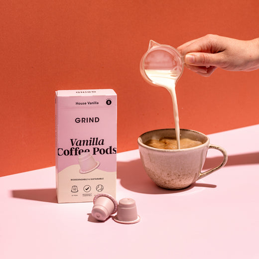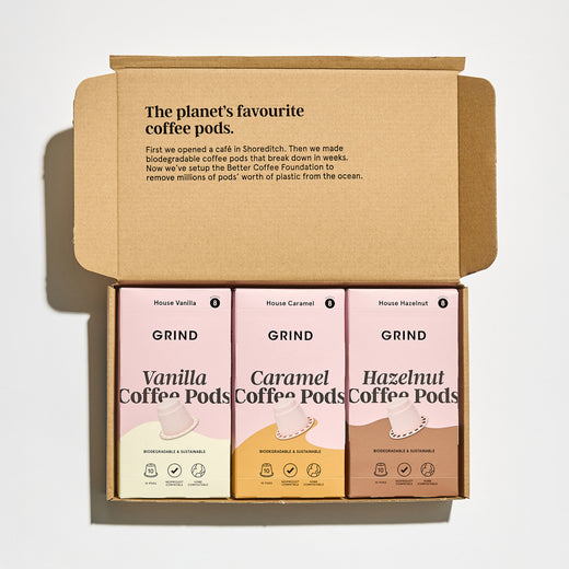 Our biodegradable pods are compatible with your original-style Nespresso® machine or with our very own Grind Coffee Pod Machine.