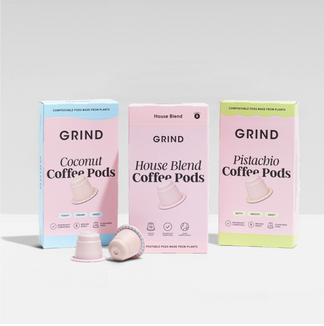 Grind coffee pods are compatible with original-style Nespresso® machines or with our sleek and powerful Grind Two Coffee Pod Machine.